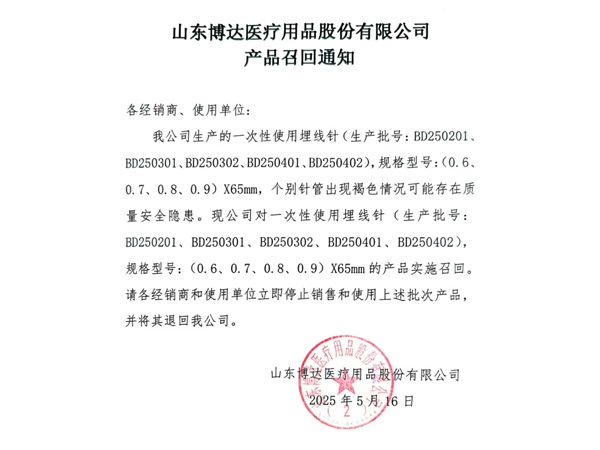 山東博達(dá)醫(yī)療用品股份有限公司是生產(chǎn)可吸收性外科縫線專業(yè)廠家,主要產(chǎn)品有可吸收縫合線 、內(nèi)窺鏡圈套線、穴位埋線、快吸收美容線、醫(yī)用羊腸線 膠原蛋白線以先進(jìn)的生物技術(shù)提取了健康哺乳動(dòng)物內(nèi)臟的膠原蛋白為基材,采用先進(jìn)的工藝加工而成,線體的主要成分為高純度膠原蛋白,并獲得了國家發(fā)明專利,頒布了YZB/國6301-2013《可吸收性外科縫線》產(chǎn)品標(biāo)準(zhǔn),并通過了ISO9001:2015和ISO13485:2016質(zhì)量管理體系認(rèn)證。